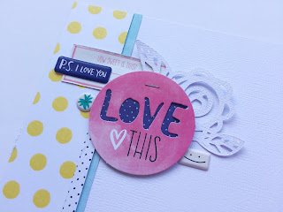 Today I have a layout to share that some of you may have already seen posted on Instagram recently. I made this with the Kellie Stamps NSD challenge in mind. The challenge was to use stamps and at least 3 types of embellishments